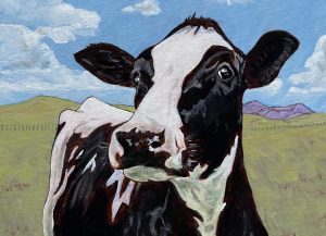 Painted in January, 2026. 12”x12”.   Acrylic on stretched canvas.  Price $144.00 Cdn. Unframed This painting is part of a series of farm animals that I’m currently