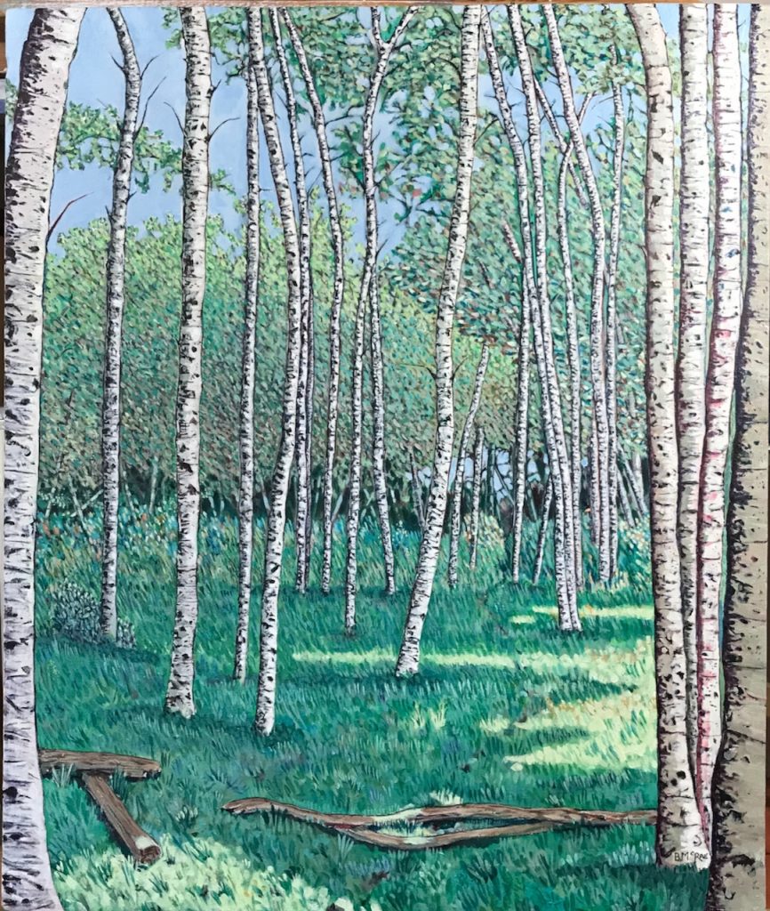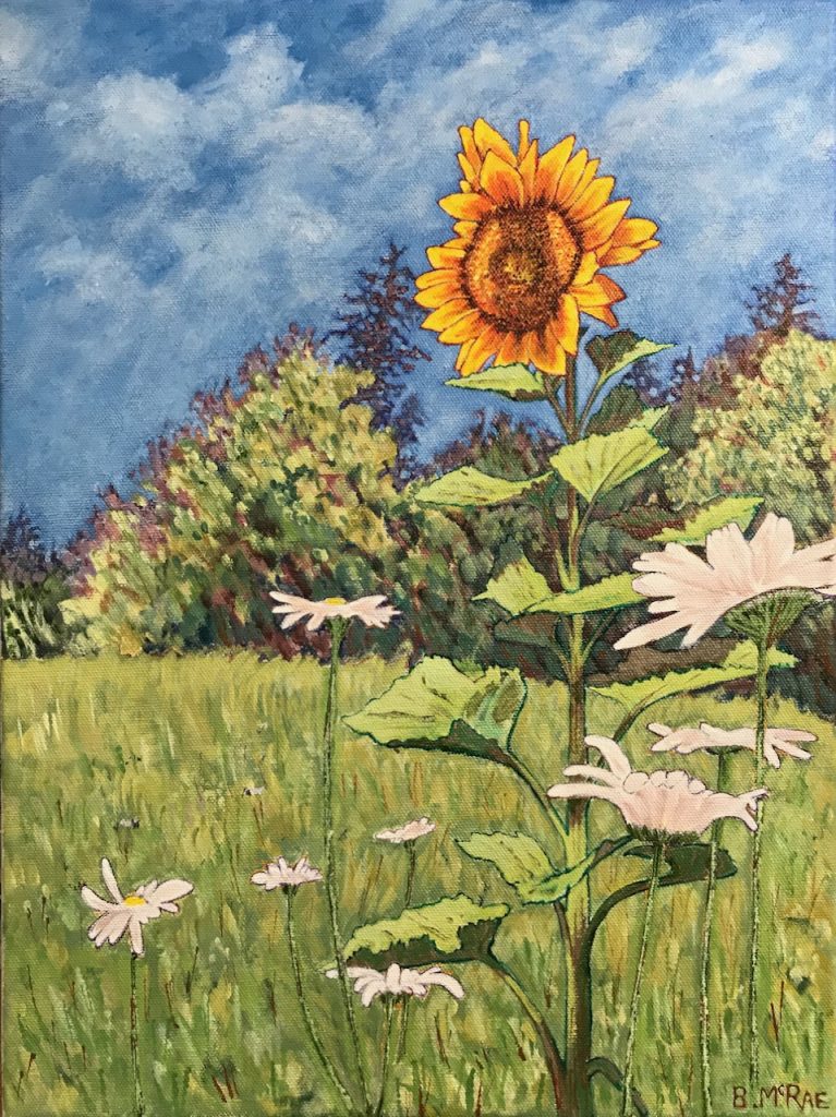 Painted August 2020. 16′ x 12″. Acrylic on Canvas. $225.00 Canadian – Framed. In early Spring, we cleared an acre of blackberry brambles in preparation for cabin building. I wasn’t sure what would re-establish itself over the summer, but I didn’t expect to see a number of tall wild sunflowers. Since we needed to have […]