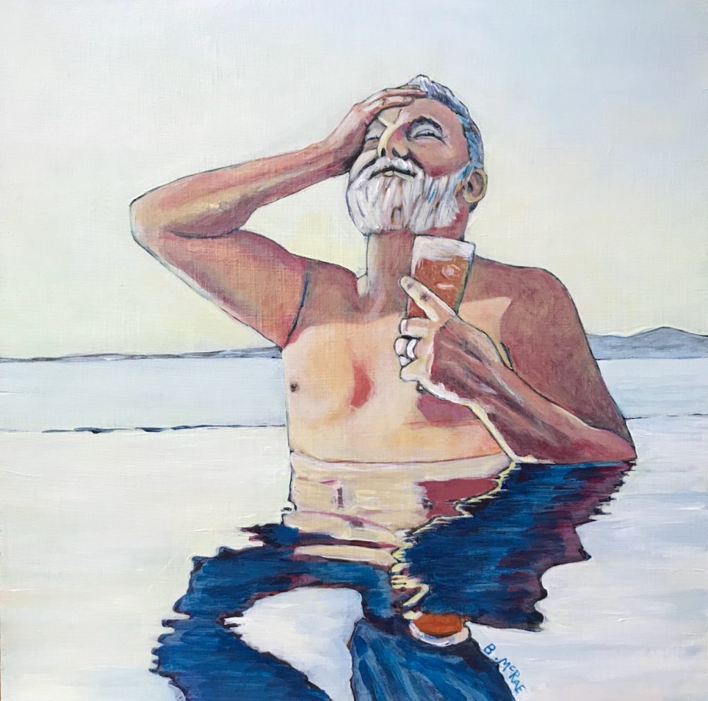 It occurred to me that I had never done a self-portrait, so for my last painting of 2020, I chose to base my self-portrait on a photo that I have from a pre-Covid trip to Puerto Vallarta. Enjoying the sunset from the infinity pool atop the Pinnacle Hotel was one of the best memories from that trip.