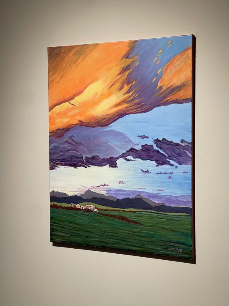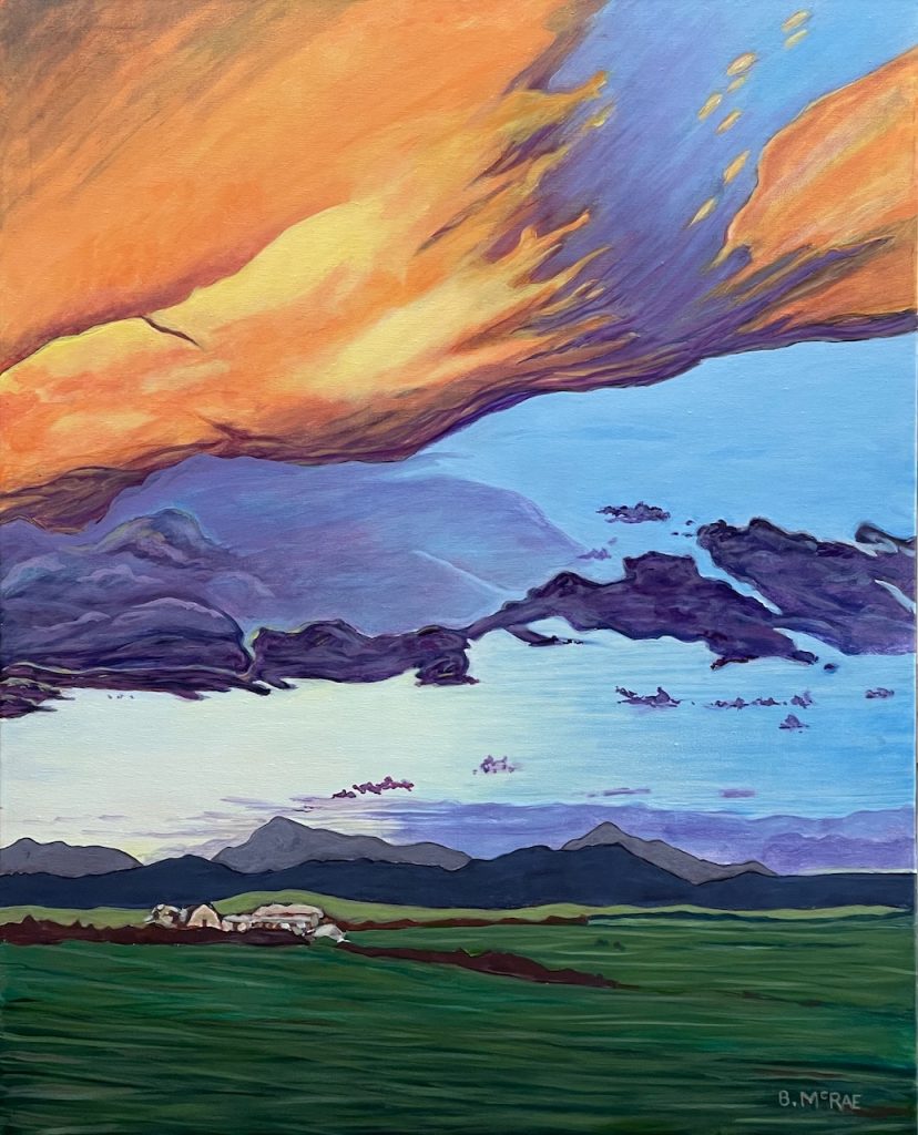 My cousin Jean posted some spectacular photos of the morning clouds from her front porch. She was kind enough to let me use one of these as a reference for this painting. Although my paintings tend towards highly saturated colour, in this case the painting is surprisingly close to reality.