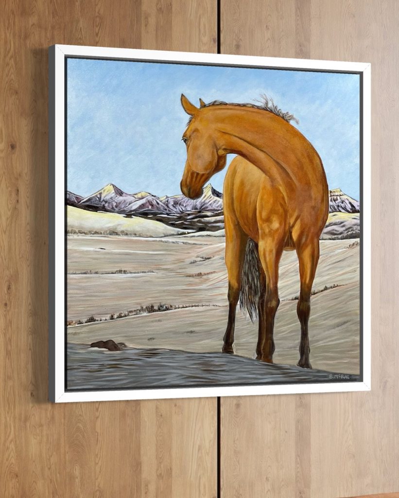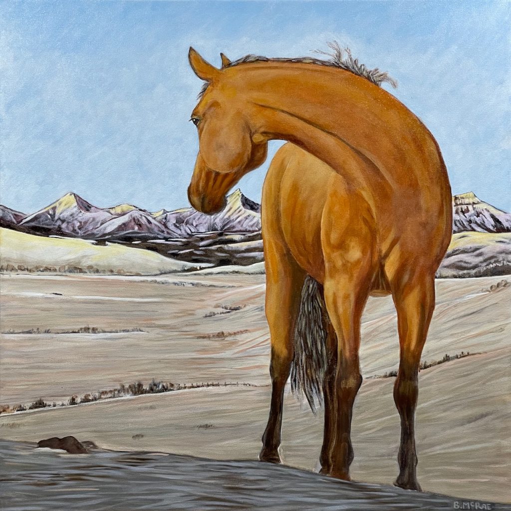Riding horses is an integral part of life on a working cattle ranch. Although we had a number of horses to choose from, My favourite was a small buckskin we named Bimbo. This horse miraculously appeared one Spring, trotting beside his mother, a sweet Albino mare with bad eye-sight who had been a gift from my grandfather when I was five. Since the horses had spent the winter on their own and the fact that we had no stallions on the ranch, a newborn horse was a big surprise. Bimbo’s father was probably an Arab stallion that we’d found wandering a back road and had put in the field while the owner came to collect him. The result of this brief dalliance was a beautiful buckskin pony with boundless energy and a really sweet disposition. I spent a lot of time on that horse exploring the foothills or doing chores around the ranch. Bimbo never seemed to tire and he was always willing to deliver whatever was asked of him. We also competed in a number of Western riding events locally. There’s a real bond when you spend that much time with a horse.